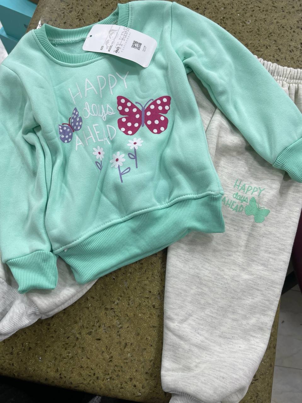 بجامات بيبي فوتر مبطن لون تركواز بنطال رمادي