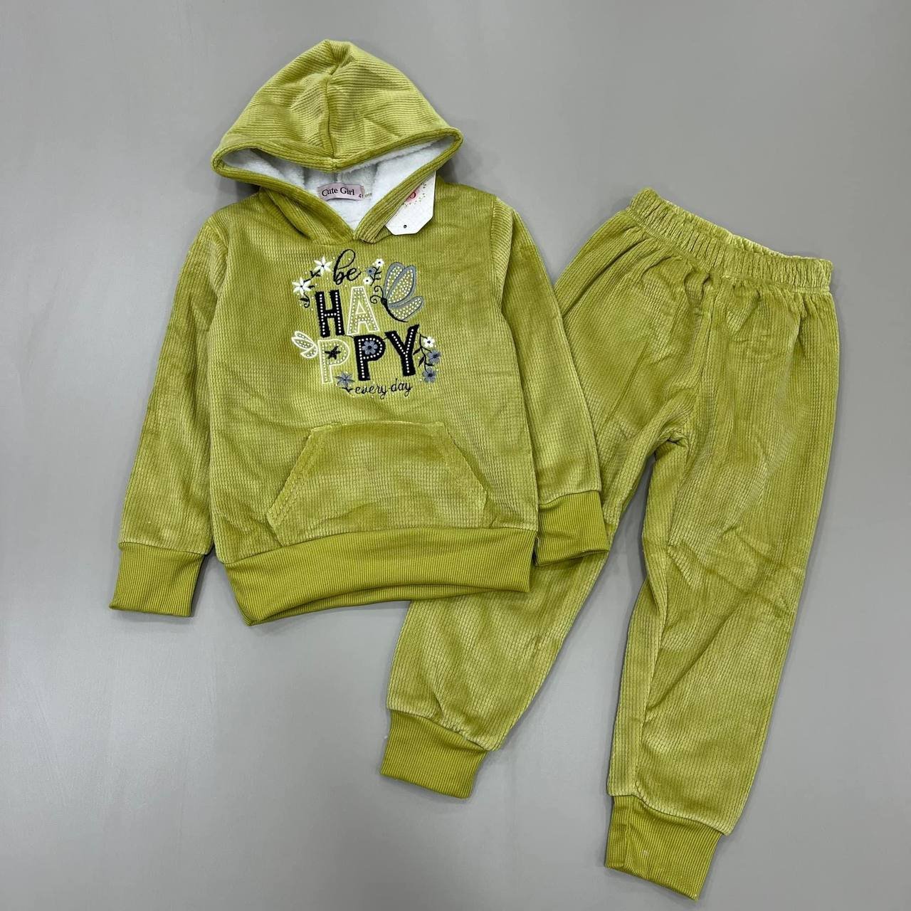 / بجامة بناتي مخمل مبطن فرو اللون أخضر زيتوني