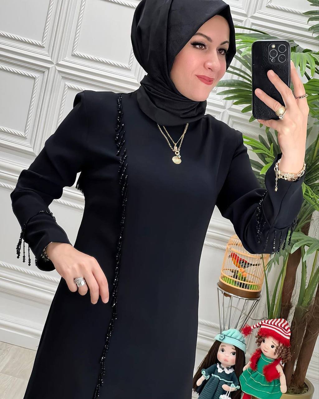 طقم تونيك+ بنطلون مع شك كريستال اللون الأسود