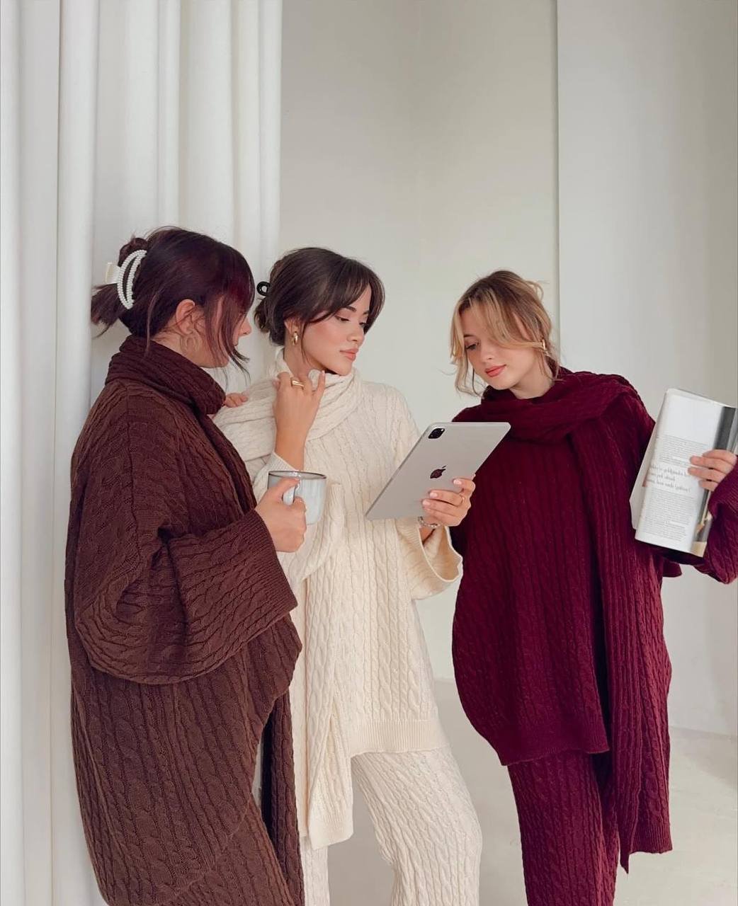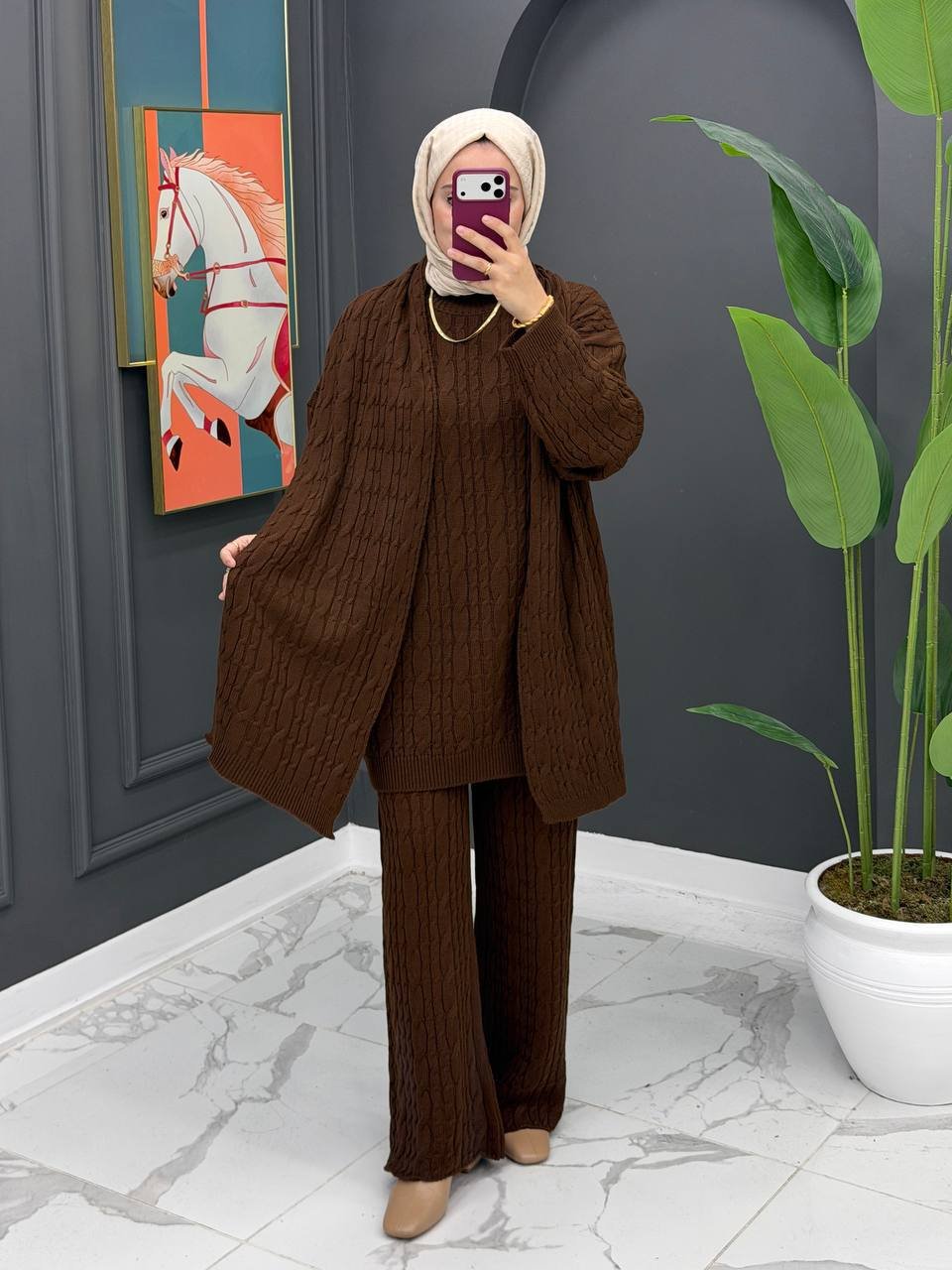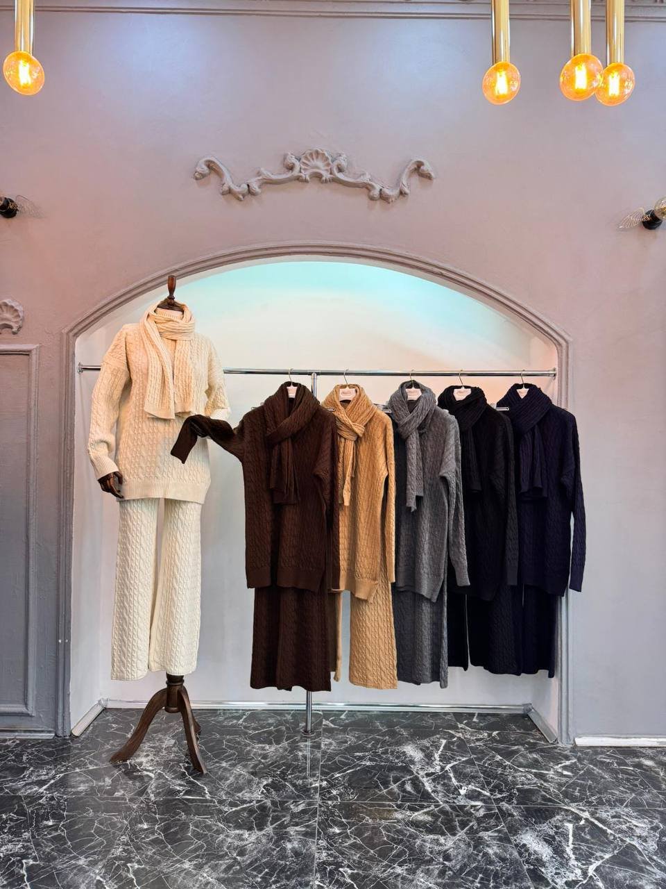 طقم صوف 3 قطع ( بلوز +بنطال +سكارف ) ون سايز