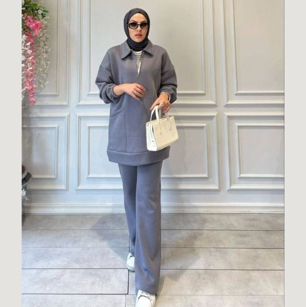 يتميز بتصميم بسيط وعصري مع هودي بجيب أمامي وسروال مطاطي الخصر لراحة يومية. مناسب للإطلالات الكاجوال أو للرياضة والخروج اليومي.