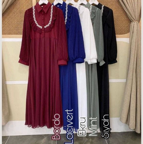 فستان شيفون مبطن 5 ألوان ابيض/نيلي /خمري/زيتي/أسود
