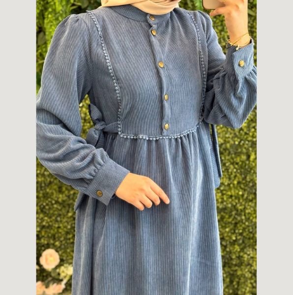 فستان مخمل لون أزرق جينز