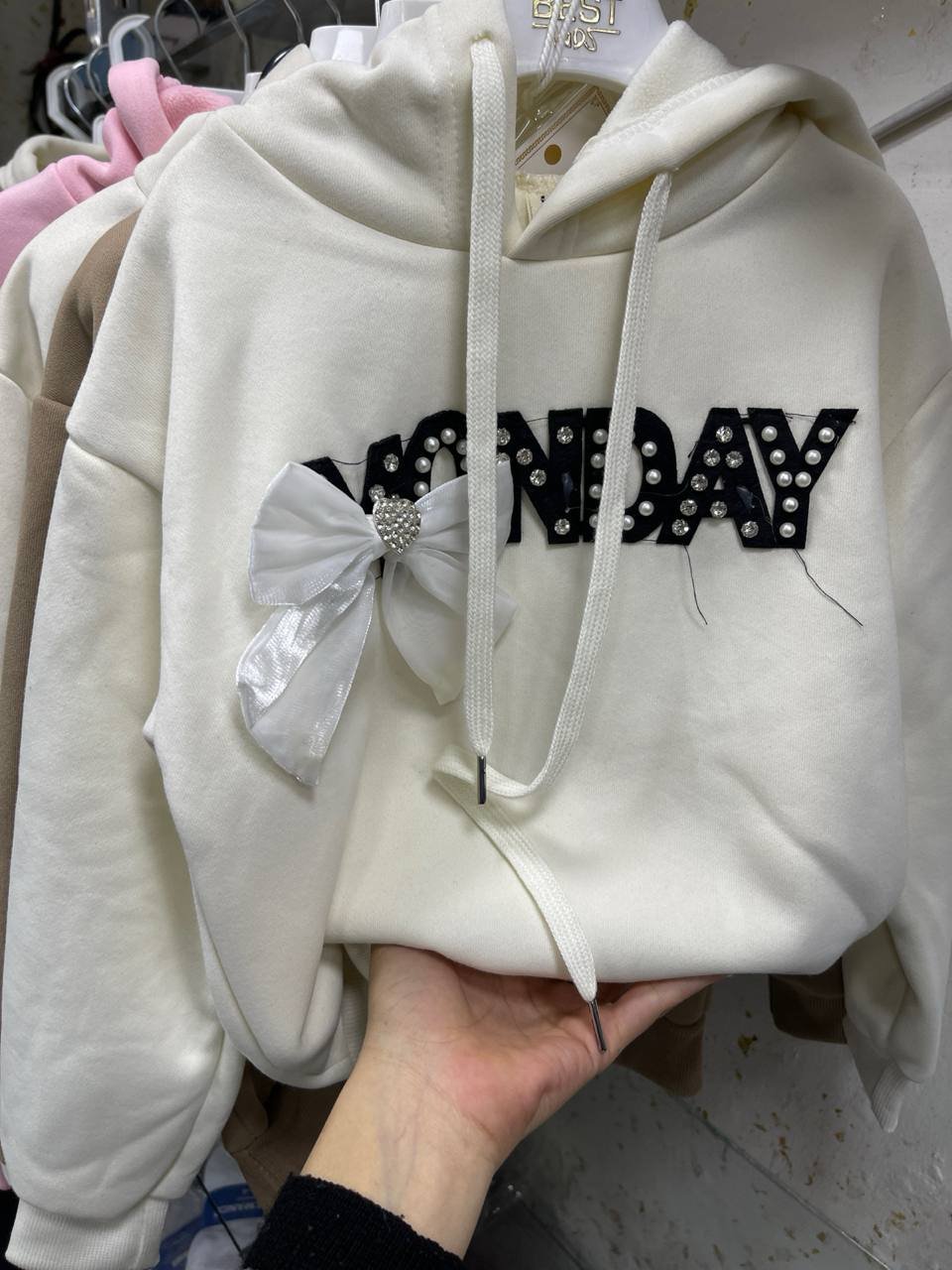 / هودي بناتي فوتر مبطن لون أبيض