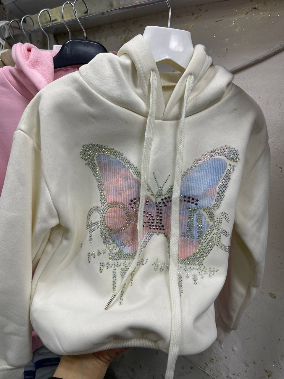 كمية هودي بناتي فوتر مبطن لون أبيض