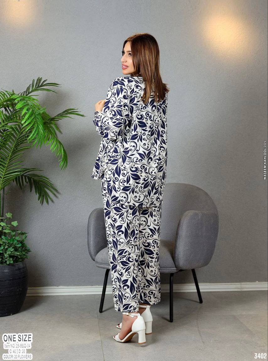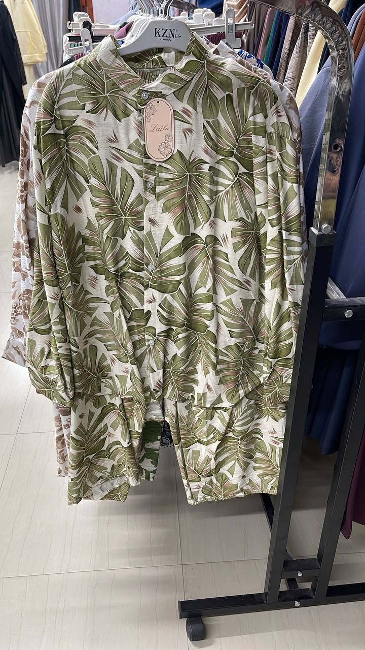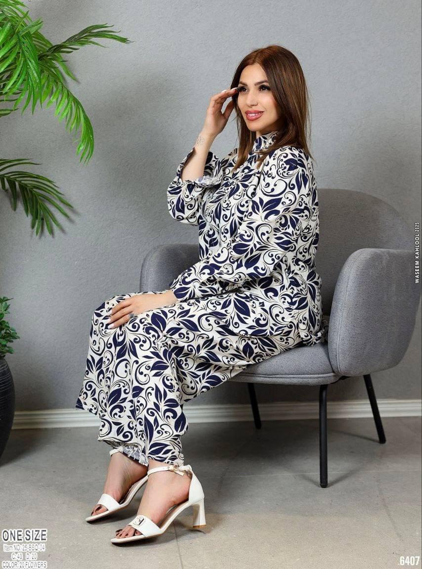 طقم ستاتي ون سايز قماش ايروبين بنقشات وألوان جذابة