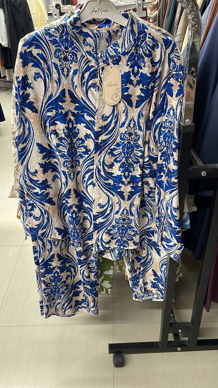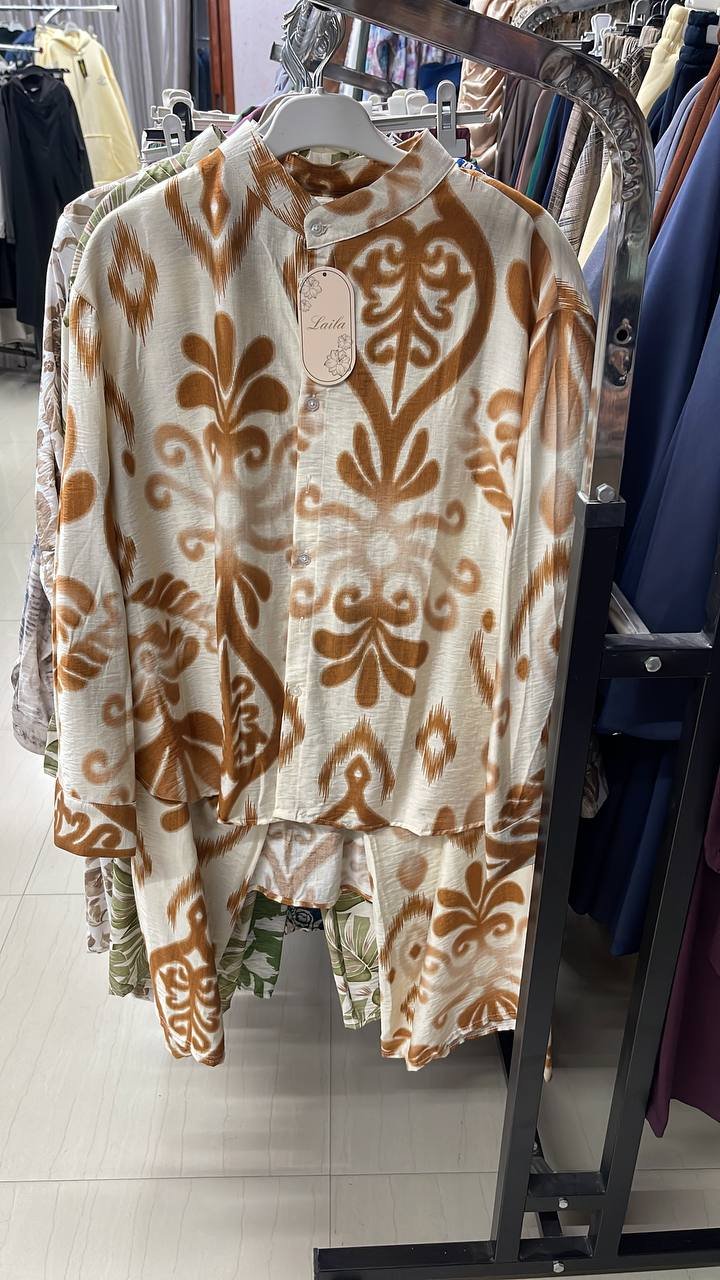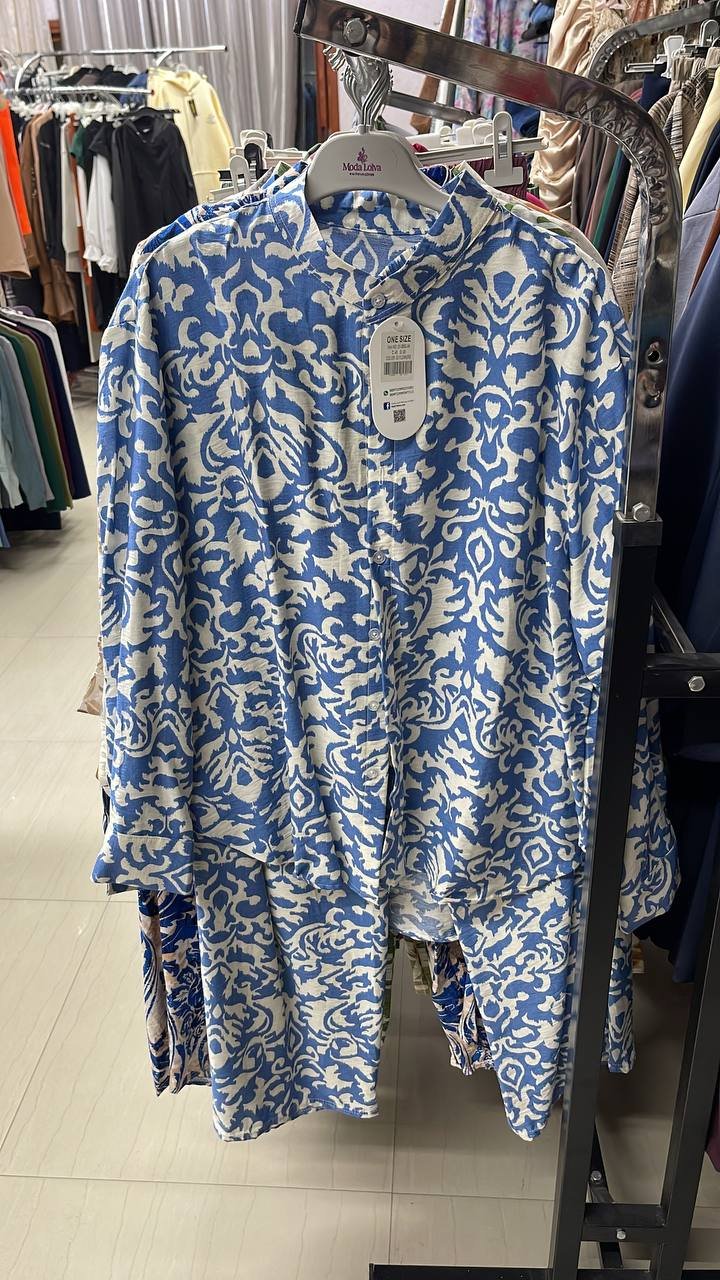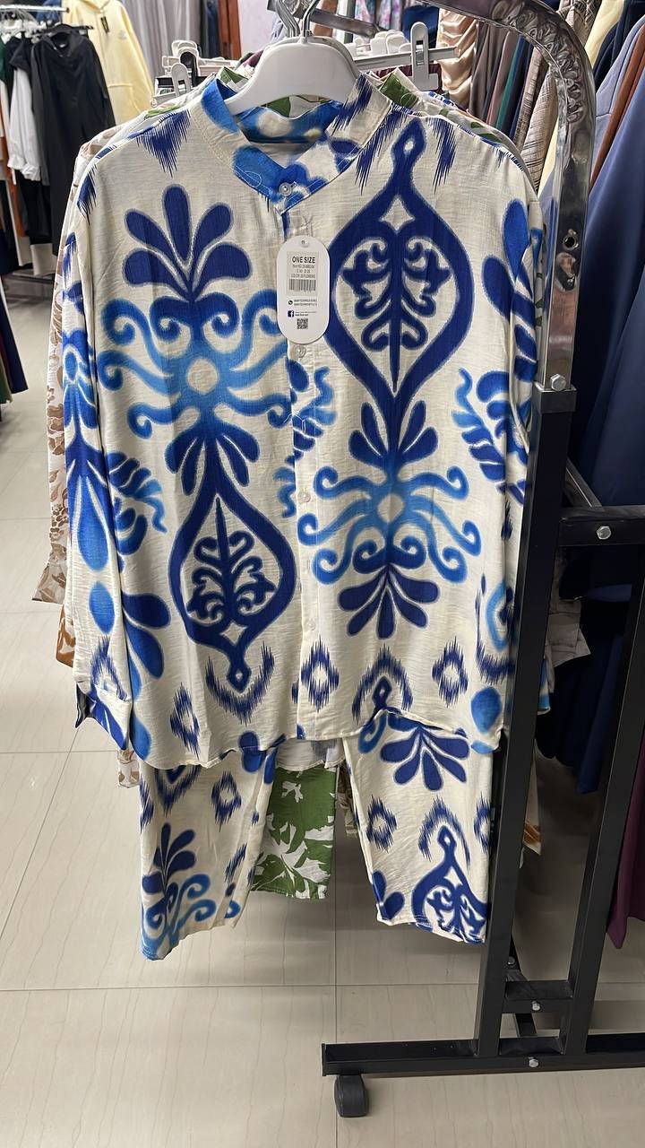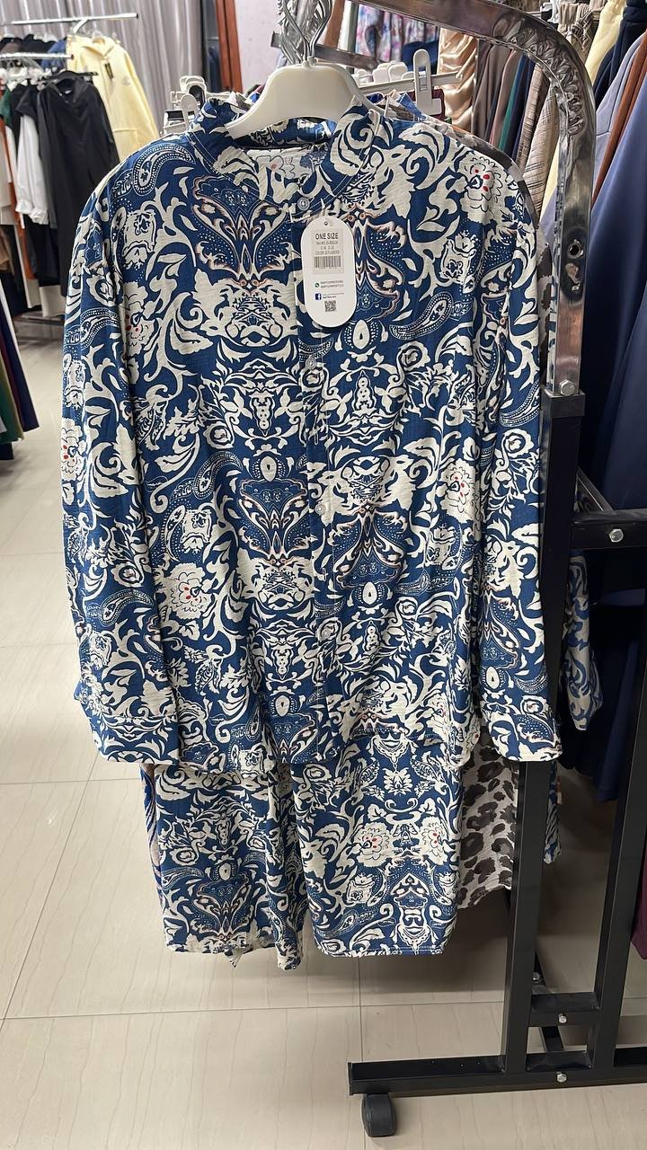 +سعر الشحنطقم ستاتي ون سايز قماش ايروبين بنقشات وألوان جذابة
